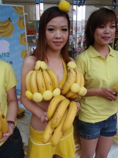 活動(dòng)現(xiàn)場,美眉穿著“香蕉裝”分送香蕉給民眾,雖然香蕉穿在身上有些重量,但可以幫蕉農(nóng)促銷香蕉也就不覺得辛苦。