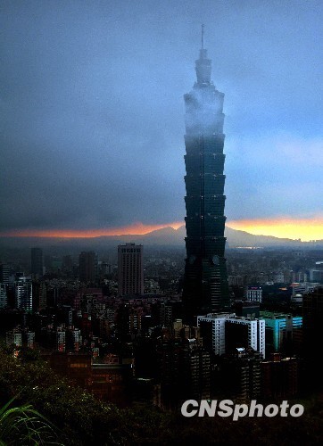 6月28日傍晚,臺(tái)北市一陣大雨后,從象山俯瞰市區(qū),101摩天大樓聳入云霄,后山紅云如火,景觀如畫。美麗的臺(tái)北市地處盆地,氣候多變,夏季的城市景色也時(shí)常變幻莫測(cè)。 中新社發(fā) 宋吉河 攝