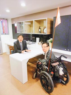 臺(tái)北市都發(fā)局長(zhǎng)丁育群(左)與自由空間基金會(huì)董事長(zhǎng)唐峰正,體驗(yàn)新落成的全能住宅。 圖片來源:中國時(shí)報(bào)