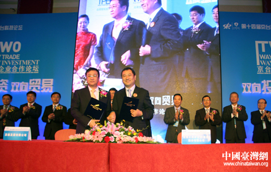 本次論壇上,京泰發(fā)展有限公司與北京王府井百貨集團(tuán)有限公司簽署合作意向,為其提供臺(tái)灣特色產(chǎn)品信息并代理其在臺(tái)采購(gòu)。此外,作為推動(dòng)兩岸人員往來和文化交流的代表性項(xiàng)目,京泰發(fā)展有限公司還與北京天安國(guó)旅簽署戰(zhàn)略合作意向,雙方今后將允許利用對(duì)方在本地市場(chǎng)的優(yōu)勢(shì),進(jìn)一步促進(jìn)京臺(tái)人員往來和經(jīng)貿(mào)合作。(記者 王思羽)