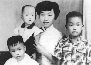 在臺灣家中,周純娟與三個兒子在一起。 周純娟/供圖
