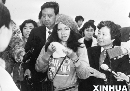 1989年4月20日,臺(tái)灣著名女作家三毛(原名陳平)尋“根”回到故鄉(xiāng)――浙江省舟山市定海區(qū)小沙鄉(xiāng)。當(dāng)她踏上故土?xí)r,熱淚盈眶。她嗚咽著說:我盼了40年,終于實(shí)現(xiàn)了夢(mèng)想!新華社 發(fā)