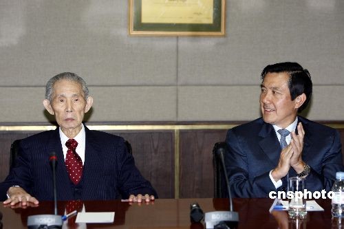 資料圖:4月7日,馬英九與蕭萬(wàn)長(zhǎng)傍晚拜會(huì)臺(tái)塑集團(tuán)創(chuàng)辦人王永慶(左),就外界矚目聚焦的兩岸三通、大陸投資松綁等議題進(jìn)行交談。這是馬英九選后“請(qǐng)益之旅”首度公開拜會(huì)企業(yè)界。圖為臺(tái)塑集團(tuán)創(chuàng)辦人王永慶。 中新社發(fā) 杜洋 攝