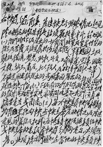 圖為1948年3月25日毛澤東起草的中共中央關(guān)于建立報(bào)告制度的補(bǔ)充指示(局部)。
