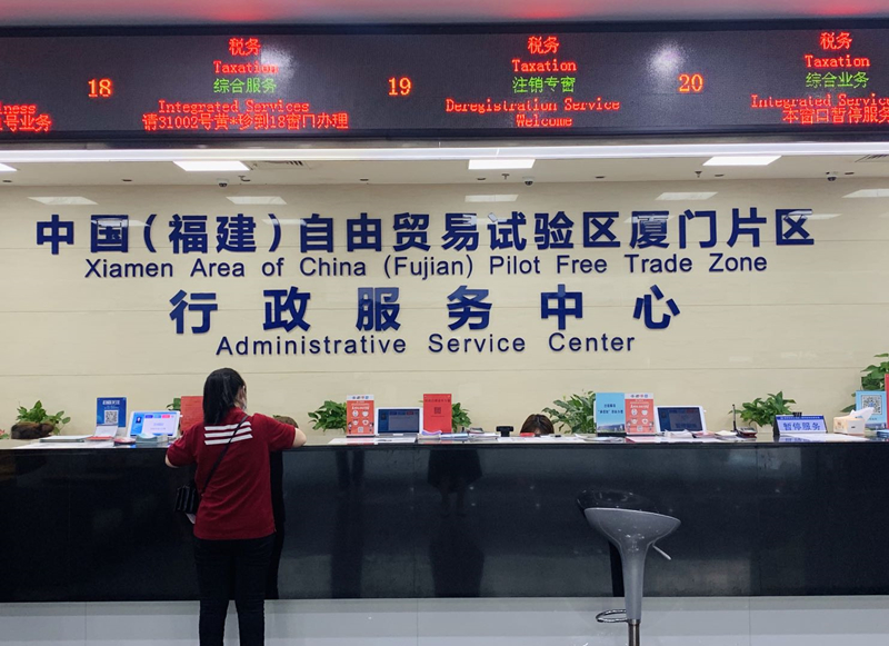 中國(guó)(福建)自由貿(mào)易試驗(yàn)區(qū)廈門片區(qū)行政服務(wù)中心場(chǎng)景(任妍 攝)