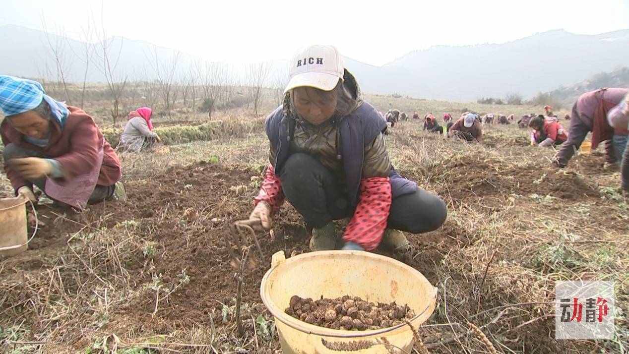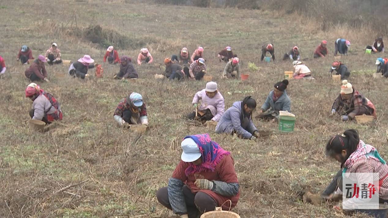 產(chǎn)業(yè)化的發(fā)展路子不僅讓城鎮(zhèn)居民就近就業(yè),也讓地處山區(qū)的村民們?cè)谑来鷦谧鞯耐恋乩锍闪斯と,企業(yè)加工的半夏就來自這片基地。溫度接近零度的烏蒙山區(qū),本該是農(nóng)閑時(shí)節(jié),但在赫章縣鐵匠苗族鄉(xiāng)的中藥材種植基地里卻有著少見的繁忙景象,70多位工人正拿著釘耙提著桶采收半夏。