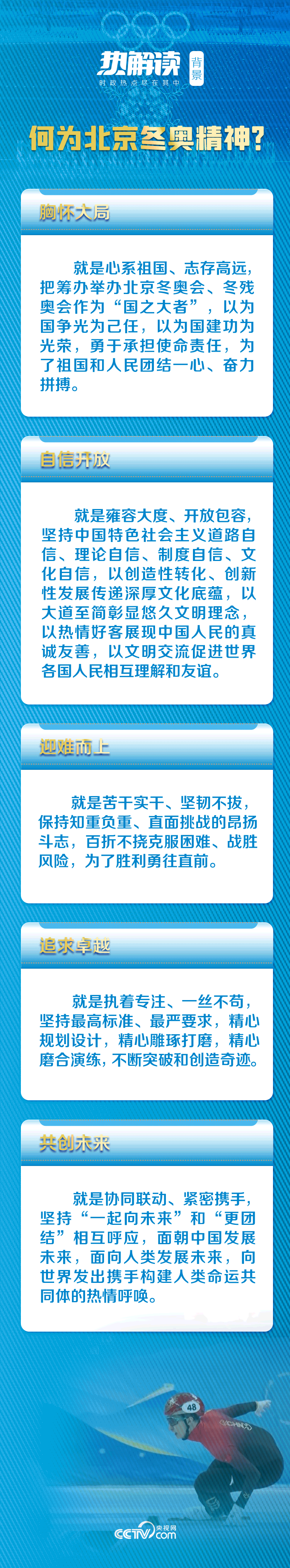 習(xí)近平總書記的重要講話充分肯定了北京冬奧會、冬殘奧會取得的優(yōu)異成績,全面回顧了7年籌辦備賽的不平凡歷程,深入總結(jié)了籌辦舉辦北京冬奧會、冬殘奧會的寶貴經(jīng)驗,并首次提出“胸懷大局、自信開放、迎難而上、追求卓越、共創(chuàng)未來”二十字北京冬奧精神。