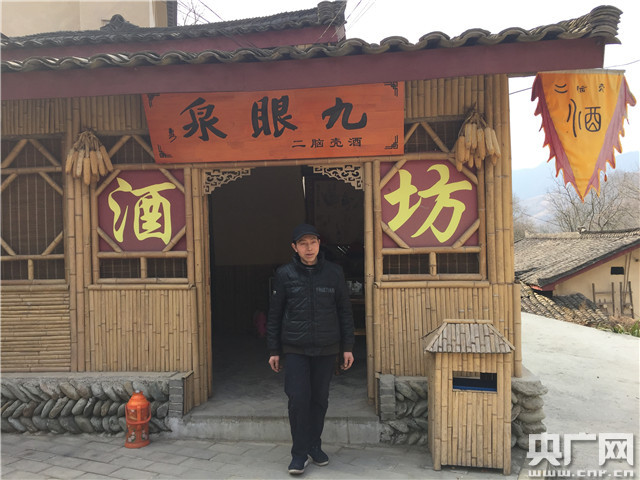 45歲的朱緒高就是其中的一個受益者。憑著祖?zhèn)鞯尼劸剖炙嚕谡姆龀窒,朱緒高開辦了九眼泉二腦殼酒坊,售賣自家土方釀制的純糧食酒和果酒,酒坊自2016年開辦以來至今已售出一千多斤酒,獲得三四萬的收益。朱緒高一開始對在深山里做酒坊生意猶豫不決:“誰敢在山里開酒坊呢,擔(dān)心賣不出去!本葡悴慌孪镒由睿旒覝洗彘_展鄉(xiāng)村旅游吸引大批游客之后,老朱的自釀酒如今終于香飄千里。
