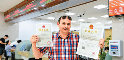 浙江義烏壓縮審批時(shí)限,外資主體登記3個(gè)工作日以?xún)?nèi)辦結(jié)。圖為來(lái)自阿爾及利亞的OTMANE在申辦營(yíng)業(yè)執(zhí)照。