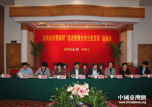 中國(guó)臺(tái)灣網(wǎng)4月12日馬鞍山消息 4月10日,安徽省政協(xié)調(diào)研組在省政協(xié)常委、港澳臺(tái)僑和外事委員會(huì)主任林文森的率領(lǐng)下,來(lái)馬鞍山市進(jìn)行“促進(jìn)我省臺(tái)資企業(yè)發(fā)展”專(zhuān)題調(diào)研,安徽省臺(tái)辦主任朱德祥,馬鞍山市政協(xié)秘書(shū)長(zhǎng)仇傳友,市臺(tái)辦主任李強(qiáng)等相關(guān)部門(mén)負(fù)責(zé)人參加調(diào)研。