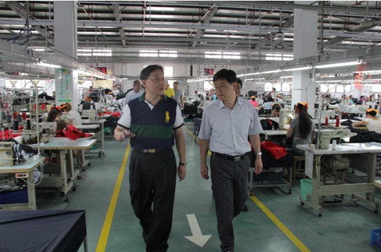 汪泗淇一行在佳益制衣公司生產(chǎn)車(chē)間調(diào)研。 (圖片來(lái)源:蚌埠市臺(tái)辦)