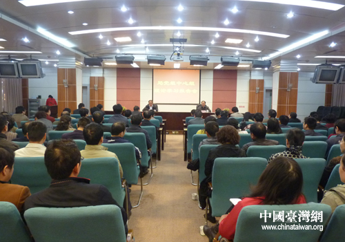 中國(guó)臺(tái)灣網(wǎng)11月7日合肥消息 11月5日下午,省臺(tái)辦主任朱德祥應(yīng)邀赴省廣電局,給局黨組中心組理論學(xué)習(xí)成員作“臺(tái)海形勢(shì)報(bào)告”。省委宣傳部副部長(zhǎng)、省廣電局黨組書(shū)記、局長(zhǎng)車(chē)敦安主持報(bào)告會(huì),局黨組成員、局機(jī)關(guān)全體人員、局屬各單位領(lǐng)導(dǎo)班子成員,省廣院處以上干部及副高以上人員,其他單位副高以上人員及科級(jí)干部,近100人聆聽(tīng)了報(bào)告。