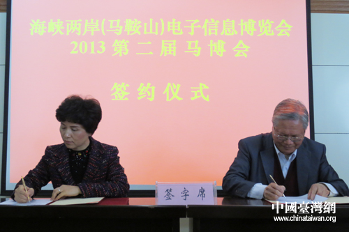 中國臺灣網(wǎng)3月21日馬鞍山消息 日前,安徽省馬鞍山市副市長王曉焱和臺灣電機電子工業(yè)同業(yè)公會秘書長陳文義在馬鞍山市開發(fā)區(qū)管委會簽訂協(xié)議,共同舉辦海峽兩岸(馬鞍山)電子信息博覽會。