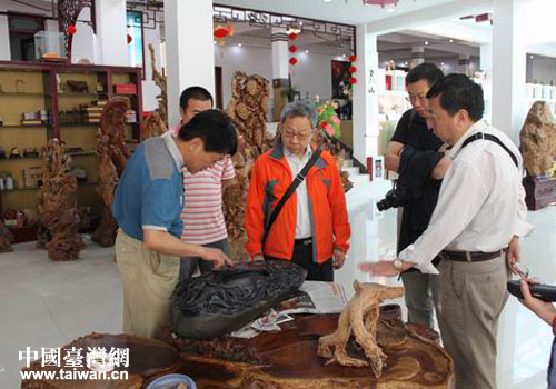 在黃山知銘旅游工藝品開發(fā)有限公司考察。(圖片來源:黃山市黃山區(qū)臺辦)