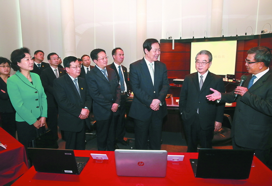 5月7日下午,省委書記張寶順率安徽經(jīng)貿(mào)文化訪問(wèn)團(tuán)考察臺(tái)灣仁寶集團(tuán),許勝雄董事長(zhǎng)(右二)介紹仁寶集團(tuán)發(fā)展情況。記者徐國(guó)康攝