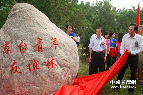 中國臺灣網(wǎng)7月17日北京消息 今天上午,“京臺青年友誼林”揭幕儀式在北京奧林克公園北區(qū)舉行。歡笑聲中,兩地師生600余人與一身便裝的海協(xié)會會長陳云林一同揮汗,種下象征兩岸友誼地久天長的松樹。