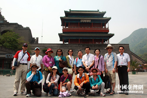 臺(tái)灣“南投縣教育工作者文教參訪團(tuán)”團(tuán)員在居庸關(guān)長城合影留念。(中國臺(tái)灣網(wǎng) 劉承思 攝)