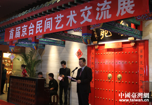 首屆京臺民間藝術(shù)交流展于2013年9月26日隆重開幕,北京市臺辦、北京市臺聯(lián)、中華青年企業(yè)家協(xié)會、北京大碗茶文化發(fā)展有限公司、北京老舍茶館有限公司的領(lǐng)導和嘉賓出席剪彩儀式。(中國臺灣網(wǎng) 楊永青 攝)