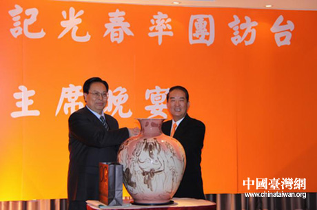 徐光春說(shuō),在這個(gè)場(chǎng)合,我非常愿意表達(dá)三層意思。第一層意思,表達(dá)感激之意。宋楚瑜先生今年3月懷著對(duì)中原人民的一片深情來(lái)到河南,出席己丑年黃帝故里拜祖大典,同時(shí)又到過(guò)河南的很多地方,這種對(duì)中原的感情、對(duì)人文始祖的感情,我們要表示誠(chéng)摯的感謝。河南參訪團(tuán)赴臺(tái)舉辦“中原文化寶島行”活動(dòng),宋楚瑜先生又給予了積極的支持和熱情的接待,充分體現(xiàn)了親民黨方面對(duì)河南的感情之深,我們同樣要表達(dá)感謝之意。第二層意思,表達(dá)欽佩之意,宋楚瑜先生是德高望重的臺(tái)灣政界要人,多年來(lái)不僅為臺(tái)灣的發(fā)展、而且為兩岸的合作發(fā)展做出了重要貢獻(xiàn)。他為推動(dòng)兩岸和平發(fā)展、促進(jìn)臺(tái)灣經(jīng)濟(jì)社會(huì)發(fā)展做了大量創(chuàng)造性的、很有成效的工作。這五年來(lái)特別是今年以來(lái),兩岸關(guān)系有了重大進(jìn)展,宋楚瑜先生所付出的智慧和辛勞功不可沒(méi),對(duì)此我們表示欽佩。宋楚瑜先生博聞強(qiáng)記,見解高遠(yuǎn),知識(shí)豐富,無(wú)論是對(duì)臺(tái)灣發(fā)展,還是對(duì)兩岸關(guān)系改善都有很好的意見和建議,十分難能可貴,對(duì)此我們同樣表示欽佩。第三層意思,表達(dá)希望之意。從河南到臺(tái)灣來(lái),我們的目的非常明確,就是希望通過(guò)實(shí)際行動(dòng)進(jìn)一步加深兩岸同胞之間的了解,推動(dòng)兩岸之間的合作和發(fā)展,衷心希望兩岸人民能夠不斷地加深了解、改善關(guān)系、加強(qiáng)合作、共同發(fā)展,使兩岸人民得到更多福祉,使中華民族永遠(yuǎn)屹立于世界民族之林,相信在大家的共同努力下,這個(gè)目的一定能夠達(dá)到。