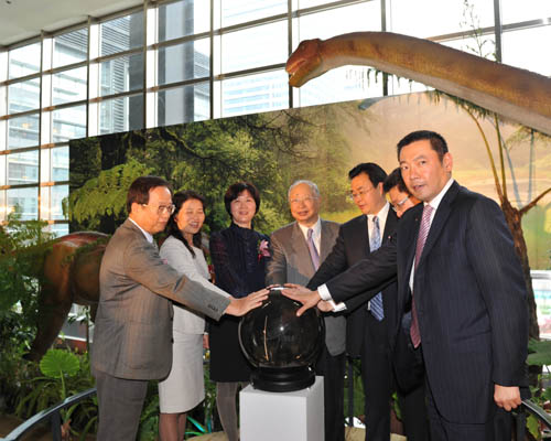 專家為蒞臨嘉賓介紹恐龍化石。