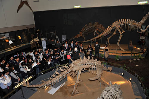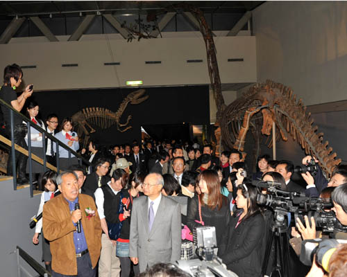 開幕式上,最吸引人眼球的是全球首次對外公開展出的化石珍品——“董氏大山鋪龍”。為其命名的“中國龍王”董枝明教授在現(xiàn)場詳細(xì)講解了該恐龍化石的發(fā)現(xiàn)過程和價(jià)值!按笊戒価埖挠蓙?”“自貢恐龍的特點(diǎn)是什么?”“恐龍的大滅絕如何解釋?”等等問題,成為觀眾關(guān)注的熱點(diǎn)。