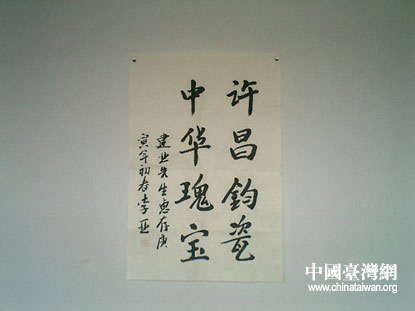 中國臺灣網(wǎng)4月7日許昌消息 河南省許昌市人民政府市長李亞2009年12月隨“中原文化寶島行”赴臺參訪期間,在臺北會見了《鄢陵雜志》社社長姚建業(yè)等許昌籍臺胞,并向其贈送了精美的鈞瓷。4月1日,李亞市長又應(yīng)邀欣然為臺灣《鄢陵雜志》社社長姚建業(yè)先生題字,以表思念盼歸之情。(中國臺灣網(wǎng)、許昌市臺辦聯(lián)合報道)