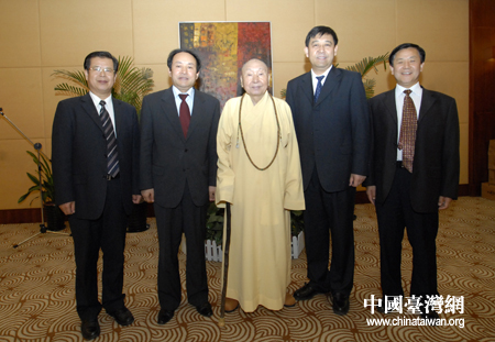 中國臺灣網(wǎng)5月7日西安消息 5月6日晚,陜西省臺辦主任閆超英在西安索菲特人民大廈會見臺灣中臺禪寺惟覺長老率領(lǐng)的赴陜參訪團一行。閆超英向惟覺長老贈送了代表陜西特色的禮品“華縣皮影”,惟覺長老回贈了中臺禪寺的“鎮(zhèn)寺之寶”辟邪半圓水晶模型。