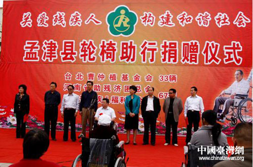 在捐贈儀式上李連慶講話指出說,社會各界愛心人士包括臺灣同胞都共同關(guān)注和宣傳殘疾人事業(yè),進(jìn)一步推動了扶殘助殘事業(yè)的發(fā)展。他對臺灣曹仲值基金會的捐贈表示感謝。