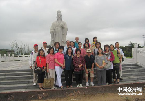 臺灣旅游團在比干廟景區(qū)合影留戀 (圖片來源:新鄉(xiāng)市臺辦)