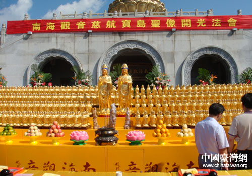 據(jù)道慈和尚介紹,同時為1000尊觀音佛像開光不僅在普陀山歷史上屬首次,在中國歷史上也絕無僅有,意義非常重大!澳虾S^音慈航寶島”是一次結緣之行,參學之行,祈福之行。道慈和尚表示,這次活動將千尊南海觀音像送到寶島千處敬奉,讓更多的有緣人瞻禮獲福,讓所有參與者都能為此同結大善緣、生大善根、積大功德。兩岸民眾有著共同的觀音信仰,血緣加佛緣將為兩岸關系的和平融洽發(fā)展奠定堅實的基礎。這次活動將構建起普陀山與臺灣千座寺院廣大信眾交流的橋梁,為兩岸佛教界創(chuàng)造出一個和諧交融、互為補益的良好平臺。(中國臺灣網(wǎng)舟山市臺辦通訊員 趙運凱)