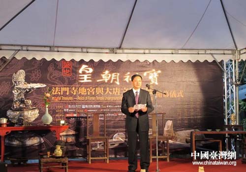 陜西省文物局副局長(zhǎng)張文首先對(duì)《法門寺地宮與唐代文物大展》隆重開幕表示祝賀。他表示,這次赴臺(tái)展覽的文物之精美,一級(jí)文物數(shù)量之多,是歷次文物出境展覽中極為罕見的一次,堪稱海峽兩岸文化交往中的一件盛事。張文希望此次展覽能夠進(jìn)一步推動(dòng)兩岸文化交流,增進(jìn)兩岸人民的友好感情。
