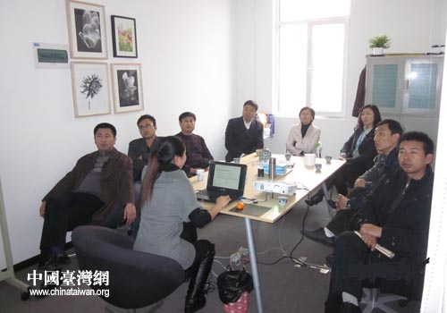 鐵嶺市臺(tái)辦調(diào)研人員聽(tīng)取有巢工作人員介紹產(chǎn)品(圖片來(lái)源:鐵嶺市臺(tái)辦)