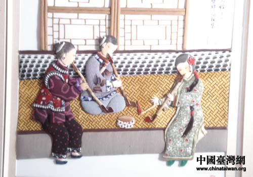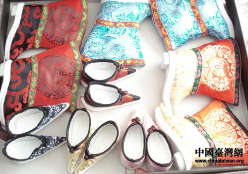 陶玉英老人布貼畫具有很強的東北特色,特別是陶老制作的三寸金鏈,更讓臺灣朋友看得愛不釋手。