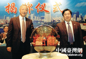 圖為江蘇省臺(tái)辦主任陳堯和淮安市委書記劉永忠共同啟動(dòng)淮安市臺(tái)商服務(wù)中心揭牌儀式按鈕。圖片來(lái)源:淮安市臺(tái)辦