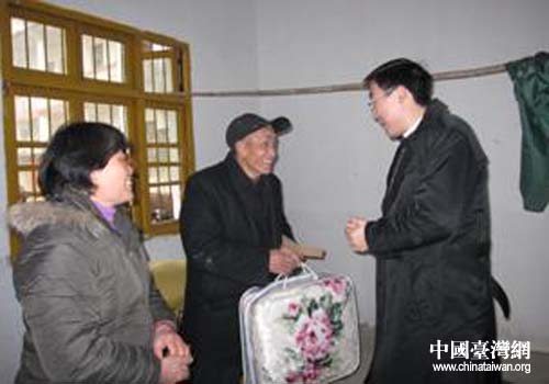 中國(guó)臺(tái)灣網(wǎng)1月20日鷹潭消息 2011年新春佳節(jié)來臨之際,江西省鷹潭市臺(tái)辦主任邵志國(guó)在縣(市、區(qū)、景區(qū))有關(guān)人員的陪同下,走訪慰問了12戶在鷹臺(tái)胞和生活困難臺(tái)屬,給他們送去了慰問品和慰問金,并向他們致以節(jié)日的問候。