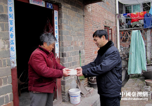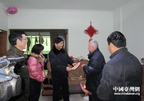 中國臺灣網(wǎng)1月26日鄖縣消息 1月26日上午,湖北鄖縣縣委常委、統(tǒng)戰(zhàn)部長焦宗啟在縣臺辦、縣臺聯(lián)會等負責同志的陪同下,看望慰問了94歲高齡的定居臺胞韓英奎和困難臺屬馮蘭英,并分別送去了500元、300元慰問金和新春的祝福。