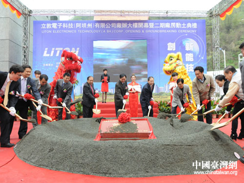 中國臺灣網(wǎng)4月15日阿壩消息 4月15日,臺灣立敦電子科技有限公司阿壩州廠辦大樓落成啟用開幕暨二期廠房動土典禮在阿壩州漩口新型工業(yè)園區(qū)舉行。四川省臺辦副主任鐘遠超,四川省商務廳副廳長劉欣,阿壩州委常委、州國資委黨委書記谷運龍,阿壩州委常委、汶川縣委書記青理東,成都市臺辦副主任唐明建,全國臺企聯(lián)副會長、成都市臺商協(xié)會會長高錦樂,立敦電子科技有限公司及其供貨商、客戶代表等共計100余人出席典禮。