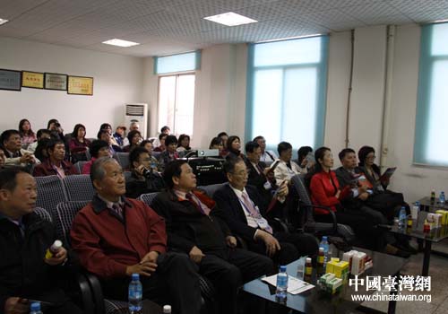 參觀貴州泛德制藥有限公司,臺(tái)灣嘉賓靜聽(tīng)公司介紹(貴陽(yáng)市臺(tái)辦 李慶斌 攝)