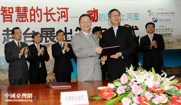 中國(guó)臺(tái)灣網(wǎng)5月31日上海消息 2010年上海世博會(huì)中國(guó)館的電子動(dòng)態(tài)版《清明上河圖》赴臺(tái)展出簽約儀式5月28日在上海世博局舉行。上海世博局副局長(zhǎng)黃健之與臺(tái)灣聯(lián)合報(bào)系經(jīng)濟(jì)日?qǐng)?bào)社社長(zhǎng)楊仁烽分別在協(xié)議書(shū)上簽字。根據(jù)協(xié)議,201O年上海世博會(huì)中國(guó)館電子動(dòng)態(tài)版《清明上河圖》將于7月1日至9月4日在臺(tái)北花博會(huì)的爭(zhēng)艷館展出。