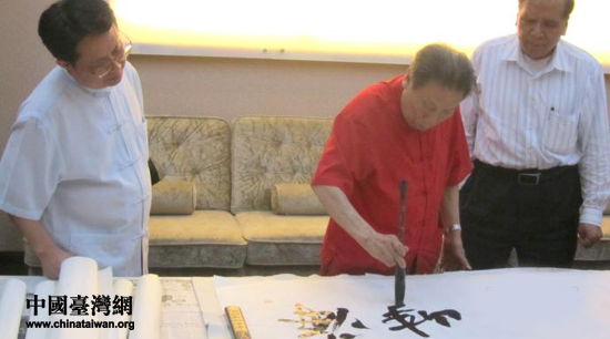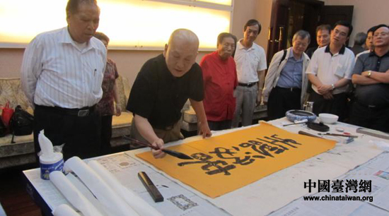 2日晚,韶關(guān)市委書(shū)記鄭振濤在韶州賓館宴請(qǐng)了臺(tái)灣畫(huà)院代表團(tuán)一行,向客人介紹了韶關(guān)豐富的人文歷史和優(yōu)美的自然風(fēng)光,希望以臺(tái)灣藝術(shù)家的丹青墨寶,讓?shí)u內(nèi)更多的同胞了解韶關(guān),帶動(dòng)更多臺(tái)灣文化藝術(shù)界人士來(lái)韶參觀(guān)交流,增進(jìn)兩地文化藝術(shù)的相互了解,促進(jìn)韶臺(tái)文化藝術(shù)交流不斷深化,同時(shí)預(yù)祝代表團(tuán)此次采風(fēng)創(chuàng)作活動(dòng)取得圓滿(mǎn)成功。晚宴后,兩地書(shū)法藝術(shù)家揮毫落墨,進(jìn)行了書(shū)法藝術(shù)交流。