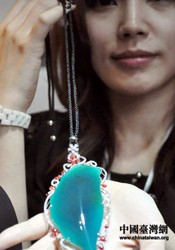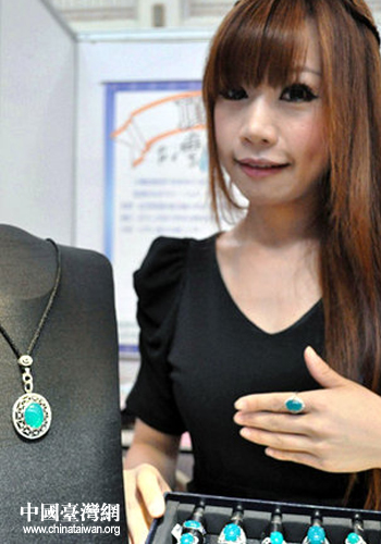 參展商品:臺(tái)灣島形藍(lán)寶石項(xiàng)鏈(圖片來源:沈陽(yáng)市臺(tái)辦)