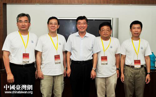 西北農(nóng)林科技大學(xué)校長(zhǎng)孫其信與臺(tái)灣學(xué)生帶隊(duì)老師合影(圖片來源:陜西省臺(tái)辦)