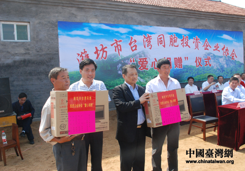 村民代表接受捐贈。(圖片來源:濰坊市臺辦)