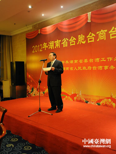 湖南省臺(tái)胞臺(tái)商臺(tái)屬新年團(tuán)拜會(huì)在長沙舉行,中共湖南省委副書記梅克保致辭。(湖南省臺(tái)辦通訊員曾群輝 攝)