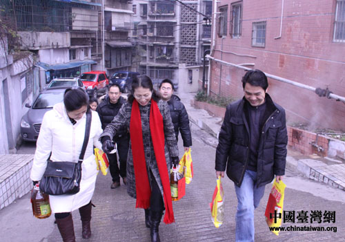 中國(guó)臺(tái)灣網(wǎng)1月16日貴陽(yáng)消息 日前,貴陽(yáng)市委統(tǒng)戰(zhàn)部副部長(zhǎng)、市臺(tái)辦主任李靜率副調(diào)研員姚天龍及干部職工,攜帶糧、油、等慰問(wèn)品,慰問(wèn)看望生活困難臺(tái)屬,送去新年的問(wèn)候和祝福。