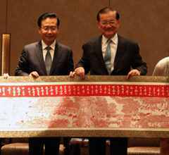 吳伯雄表示,安陽欣欣向榮、生機(jī)勃勃,歷史文化底蘊(yùn)非常深厚,這次來安陽讓我們受益很多,也感到非常榮幸。兩岸同屬中華民族,同文同祖。兩岸之間有兩座橋梁,一座是手?jǐn)y手的經(jīng)濟(jì)合作,一座是心連心的文化交流,兩座橋梁都很重要。經(jīng)濟(jì)的合作雙贏是兩岸手?jǐn)y手的工作,而文化的交流則是心連心的工作。近年來,安陽與臺(tái)灣交流日益密切,希望兩岸建立更加緊密關(guān)系的時(shí)候,安陽扮演起更加重要的角色。吳伯雄感謝安陽當(dāng)?shù)貙?duì)臺(tái)資企業(yè)所給予的幫助,希望安陽各項(xiàng)事業(yè)百尺竿頭,更進(jìn)一步,祝愿全市人民幸福安康。