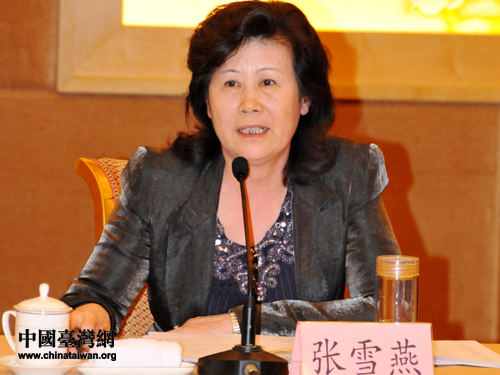 山東省臺辦主任張雪燕在會上講話。(圖片來源:山東省臺辦)