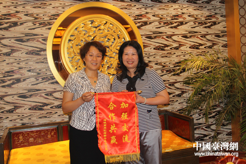 棗莊市臺辦設(shè)宴款待兩岸記者,賓主交換禮物。(圖片來源:棗莊市臺辦)