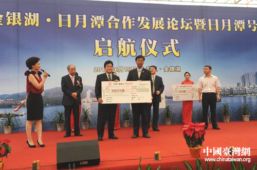中國臺灣網(wǎng)6月15日武漢消息 6月15日,“金銀湖—日月潭合作發(fā)展論壇”暨“日月潭號”游船起航儀式在湖北武漢舉行,與會(huì)的全國臺企聯(lián)常務(wù)副監(jiān)事長余明進(jìn),丹尼斯集團(tuán)董事長王任生,武漢市東西湖區(qū)人民政府、東西湖區(qū)金銀湖街道辦事處等單位和個(gè)人得知臺灣南投縣遭受暴雨災(zāi)害,共向南投縣災(zāi)區(qū)捐款125萬元人民幣。