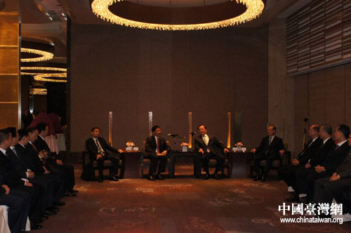 21日晚鐘勉一行在臺(tái)北會(huì)見中國國民黨榮譽(yù)主席連戰(zhàn)、中國國民黨副主席林豐正以及臺(tái)灣政界、工商界知名人士。 圖片來源:四川省臺(tái)辦